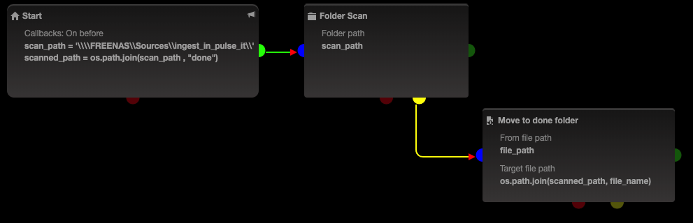 This workflow will scan files in a folder and will move every file found into the done sub-folder. The path are defined in the start task callbacks tab, you can edit them to match your own installation.