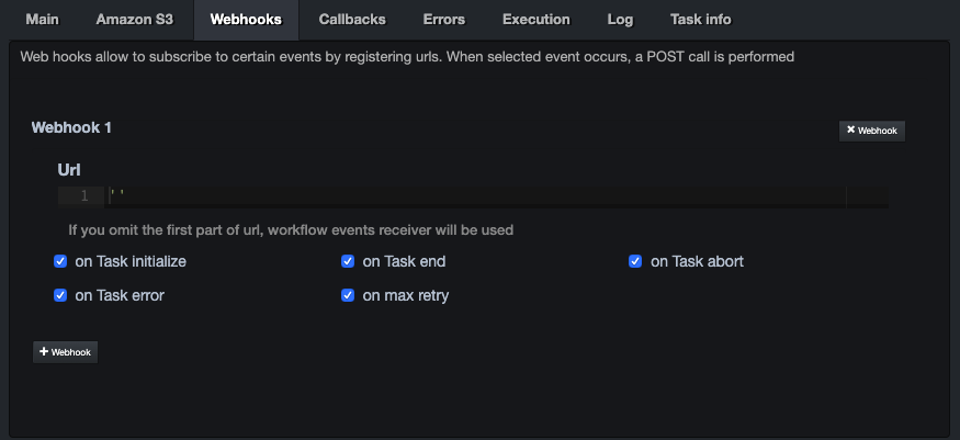 During these execution steps, you may use webhooks to communicate the status of your task execution to external systems. Webhooks (also called a web callback or HTTP push API) is a way for your app to provide other applications with event based information.